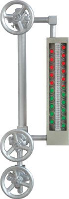 GYJ 雙色冷光源水位計是用于監測鍋爐及壓力容器水位的一次直讀儀表,表體兩側視窗玻璃成一定夾角,儀表后側配置發光二極管光源,由于光學的折射及反射原理,氣相呈紅色,液相呈綠色,兩色界面即準確指示液面。